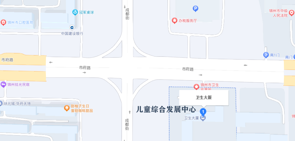 我院位于解放路与人民街的交汇处,南面金辉大厦,北对新玛特购物广场,东临锦州银行永丰支行,西临古塔区政府,地处繁华地带,地理位置优越,交通便利。