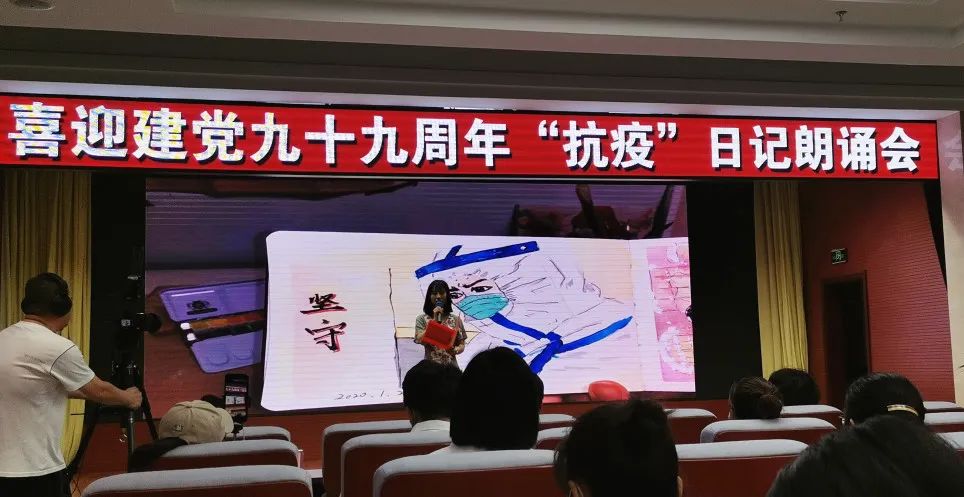 6月18日,由市总工会和市卫健委主办、市教科文卫工会承办、锦州市卫生系统工会联合会协办的喜迎建党九十九周年锦州市“抗疫”医护人员日记朗诵会在职工会馆四楼举行。我院儿外科护士艾迪思、内三科护士于淼被荣幸地选为代表,登台朗诵了她们的“抗疫”日记,分享了她们抗疫期间火线入党和与女儿分别时的感受,表达了我院全体医护人员抗击“疫情”的心声以及战胜“疫情”的决心和信心。