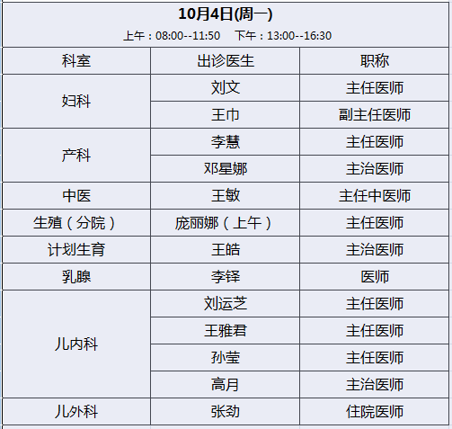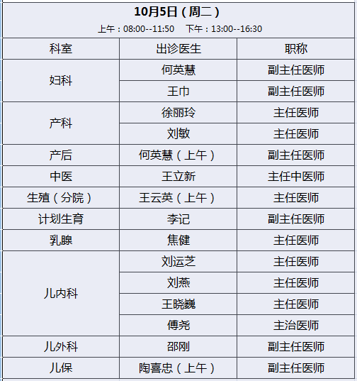 【节日排班】2021年锦州市妇婴医院国庆节医生出诊表