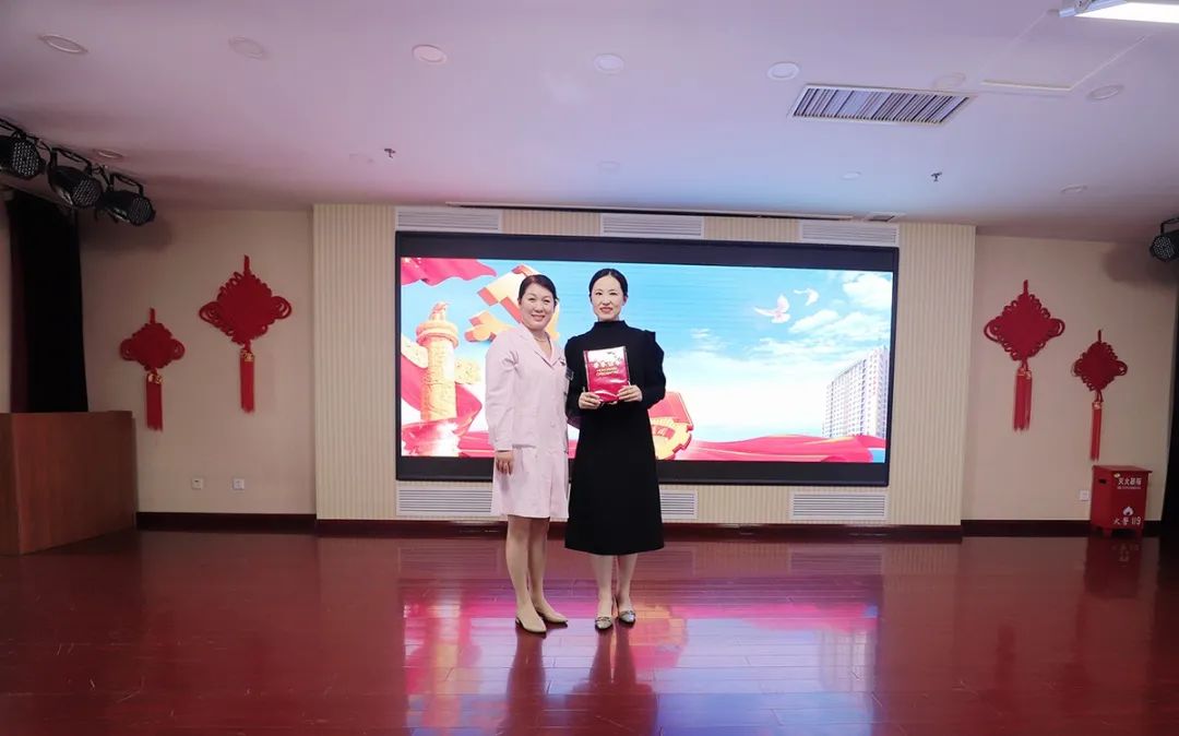 副院长张娟,纪委书记、工会主席李心页为三等奖获得者张美玲、于丹、曲晶晶颁奖