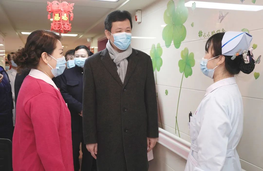 12月31日晚上18:40,市委书记靳国卫,市委副书记、代市长王心宇一行来到锦州市妇婴医院,深入医疗一线看望医护人员,向他们致以节日问候和亲切祝福。市卫健委党组书记、主任胡占升及院党政领导陪同。