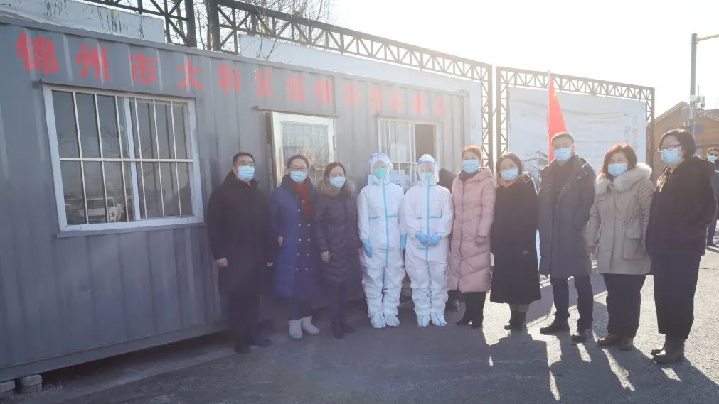 1月30日,院领导班子携职能科室负责人,慰问坚守在锦州西高速口核酸采样一线的工作队员,并对采样工作进行安全检查,同时对采样队员们响应医院党委号召、不惧寒潮、奔赴采样一线表示感谢。嘱咐队员们在做好个人防护和保暖的同时,要严格按照操作规范和要求,团结协作,不辱使命,发扬艰苦奋斗、持续作战的精神,高质量完成核酸采集任务。院领导班子对疫情防控一线人员“舍小家顾大家”的精神表示赞扬,并向他们致以节日的问候和新春祝福。