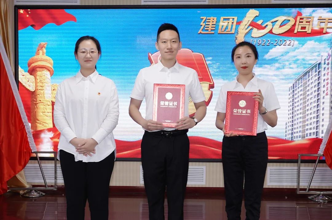 授予苑艺、何珊、苗思雨、辛欣、鲁聪5名团干部“锦州市妇婴医院优秀共青团干部”荣誉称号,由市卫健委副主任王颖、团市委副书记赵怡帆为他们颁奖。