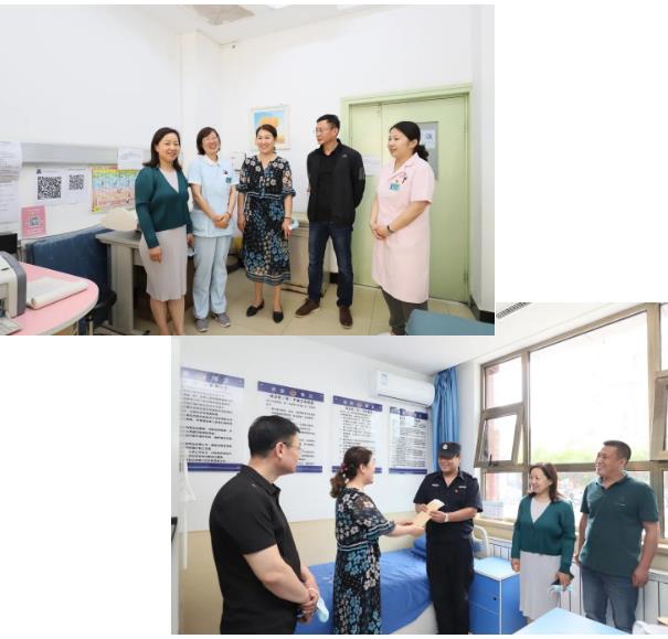 “七一”前夕,党委书记徐艳、院长金凤斌、副院长杨忠伟、离退休党支部书记张锦红一行走访了离退休、大病住院、生活困难党员和“光荣在党50年”党员。为他们送上党组织的关怀和节日的问候,并送上慰问金、慰问品。在走访中,每到一户,徐书记一行关切的询问他们的家庭、生活状况和身体情况。