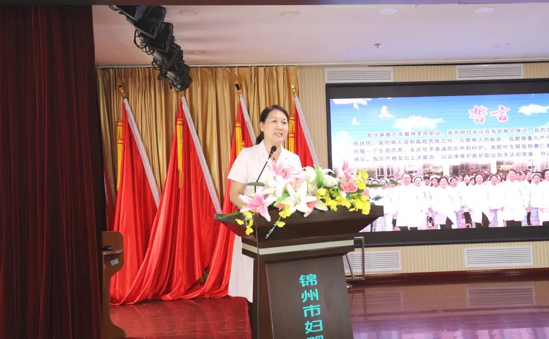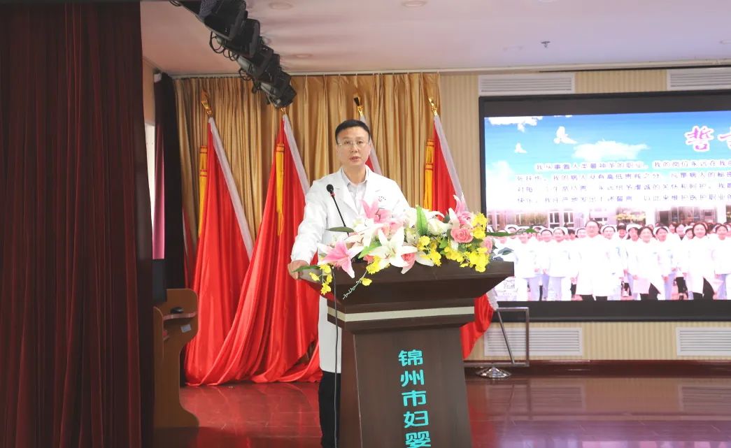 院长金凤斌带领新员工们做入职宣誓,让新员工们恪守承诺,不忘医者初心,坚定护佑妇幼健康事业发展的信仰。