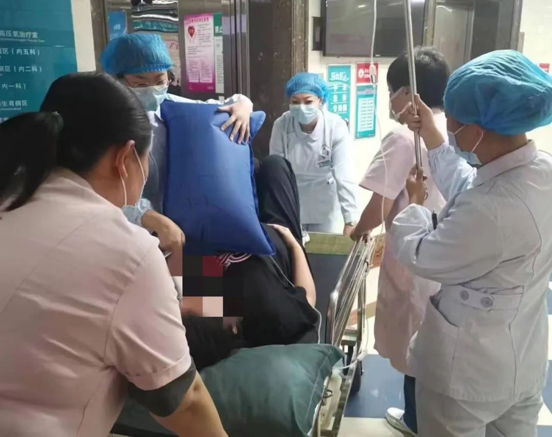经过充分准备,9月20日下午,演练正式开始。首先,门诊护理站发现一名血压升高患者,立即开通绿色通道,将其带至急诊室。孕妇于检查过程中出现子痫抽搐,医护立即采取急救措施并发出求救信号,组织抢救团队。抢救团队紧急到达并立即参与急救,同时积极与医院各相关科室、重症病房取得联系。经急救孕妇生命体征平稳,在医护的严密看护下,紧急转运至重症病房继续接受治疗。