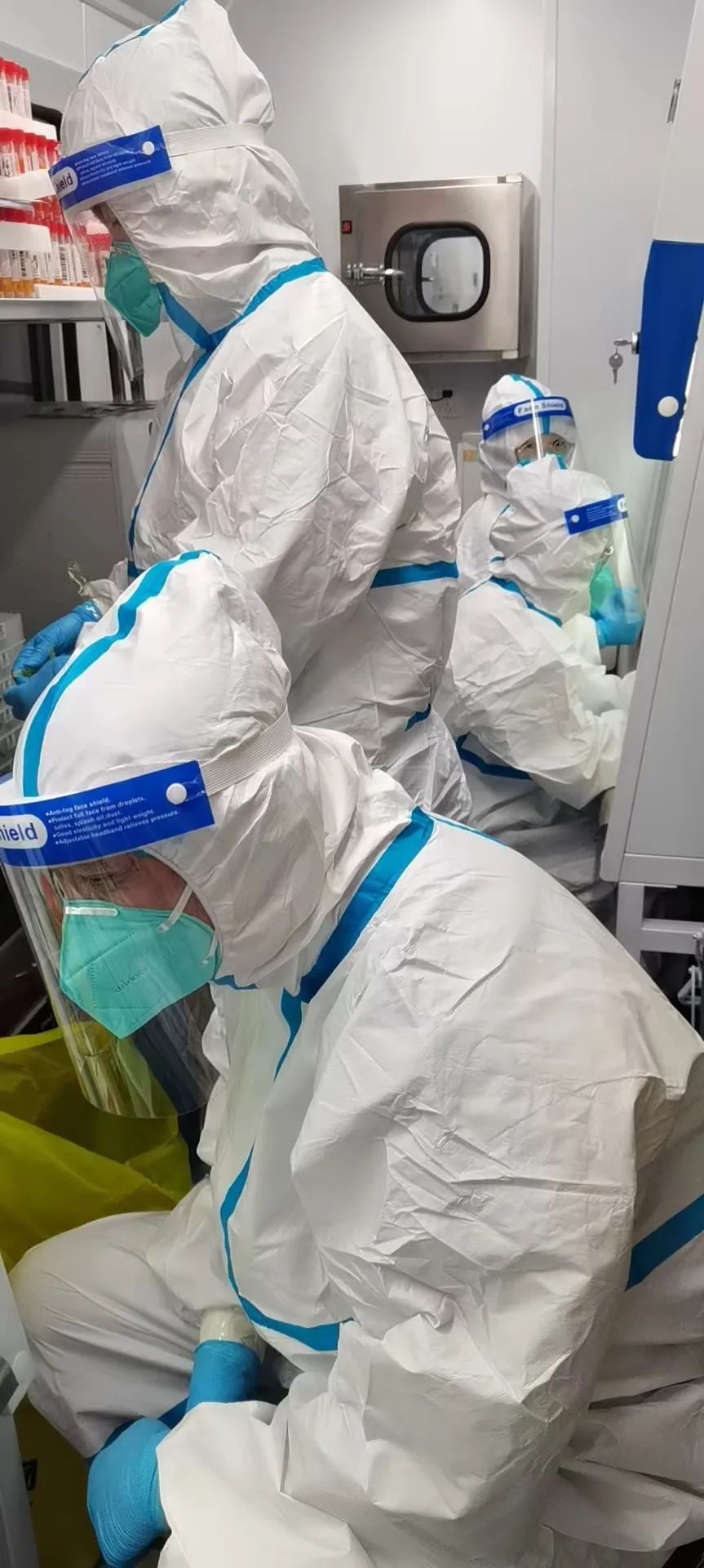 这些科室都按照医院规定实行闭环管理,医技人员吃住都在医院,昼夜奋战。中心实验室积极落实院党委疫情防控方案及措施,全体工作人员勇于担当,坚守岗位,在保证医院正常诊疗的同时,全力保障各个检测点的核酸检测任务,面对每日8000多管的核酸检测标本不眠不休,绝不懈怠。两手抓,两不误,检验人的每一份核酸报告,都是在和病毒赛跑。科室28人在医院已经连续工作3天,艰苦奋斗,不畏艰难,截至目前,完成2.3万管,33万人次核酸检测任务。用实际行动践行全心全意为人民服务的初心使命,唱响了抗击疫情的最强音!