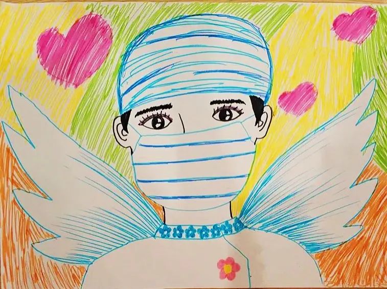 不管是新闻里的报道,还是身边医务工作者对于疫情工作的付出,小朋友们都看在眼里,记在心里,用自己稚嫩的画笔记录下来。