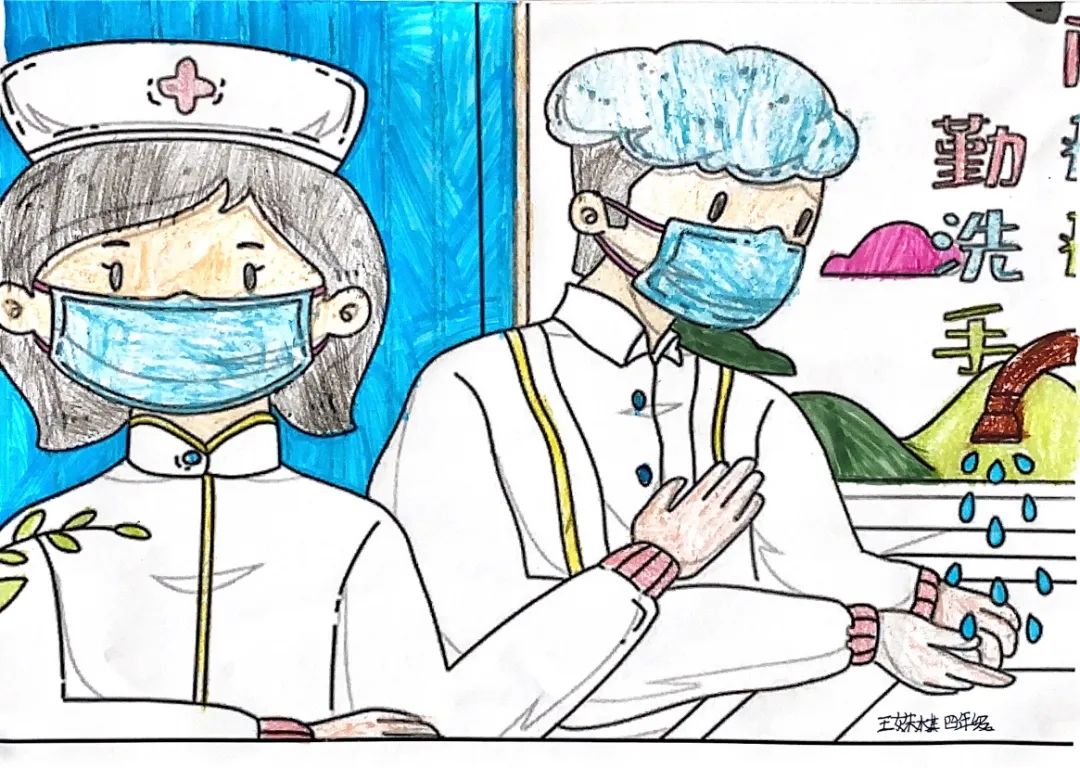 很多小朋友还以抗击疫情为主题,通过多彩的颜色和丰富的联想,表达了自己对医务人员和祖国的祝福。