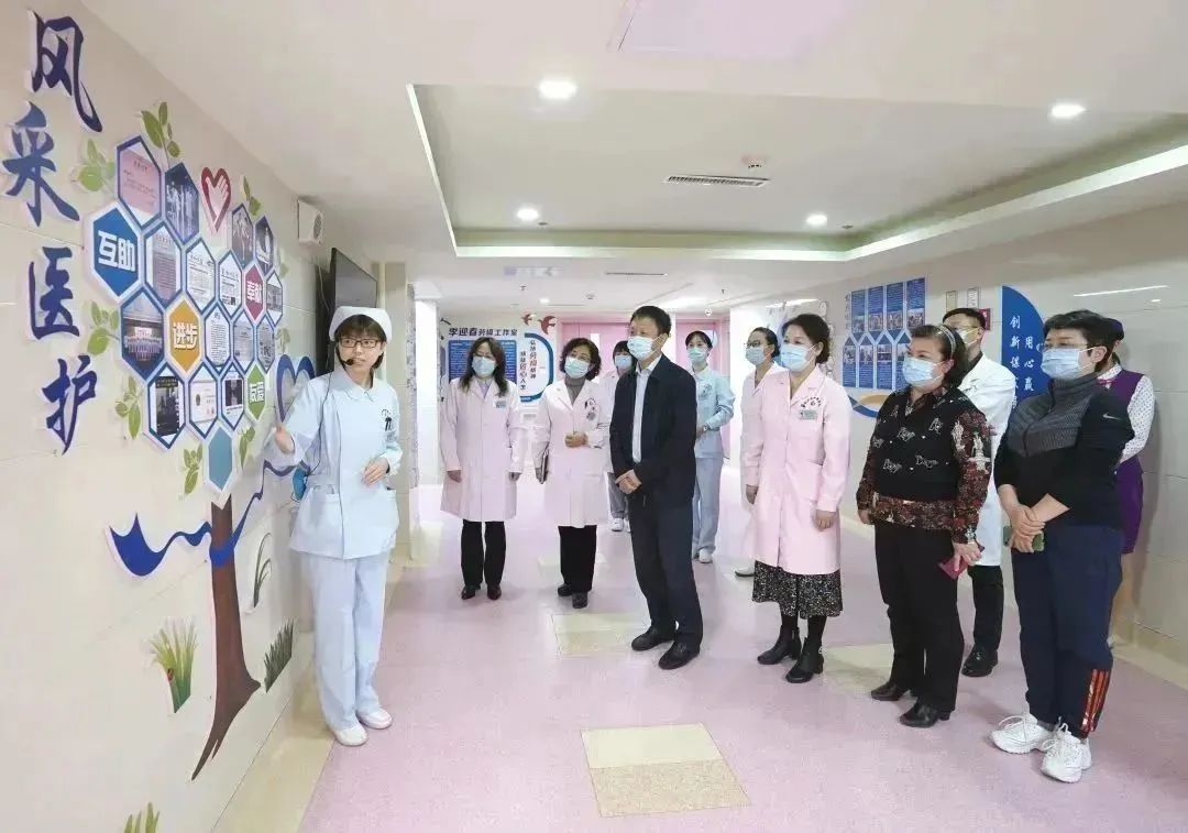 会后,阴赪宏院长一行到小儿呼吸科实地指导参观,对儿童医院在科室建设、项目开展、患者床位使用率等方面进行了详细了解。同时参观了李迎春劳模创新工作室,听取了劳模工作室团队概况、创新成果、医护风采、文化建设等情况介绍。