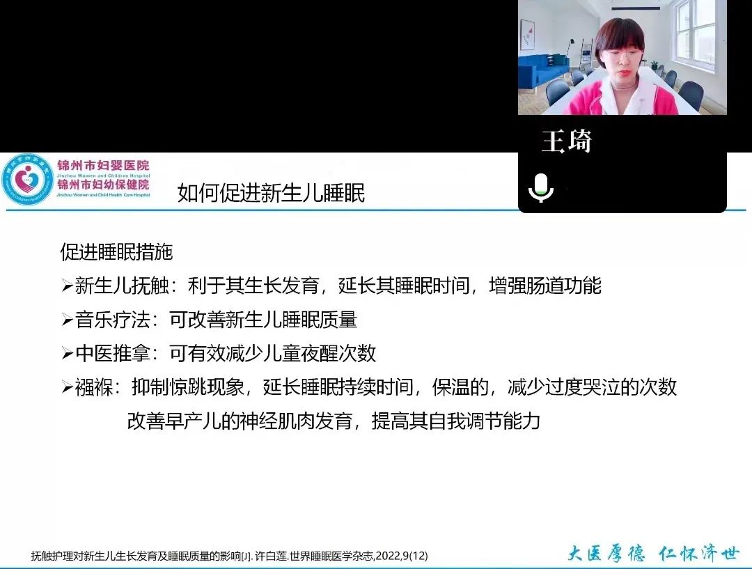 新生儿科主任王琦讲解了《新生儿睡眠特点》,主要围绕新生儿睡眠的重要性、新生儿睡眠的特点及如何促进新生儿睡眠等方面进行讲解,让很多的新手妈妈了解孩子睡眠特点,也从中学会不少促进孩子睡眠的小妙招。