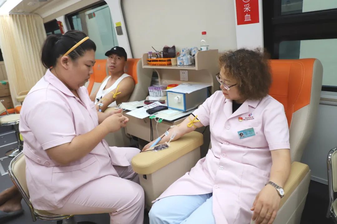点滴热血汇成爱的海洋,延续生命见证爱的力量。献血现场井然有序,献血志愿者们积极踊跃,献血的队伍中,既有医护工作者,也有行政管理人员,既有连续多年献血的老队员,也有初次献血的新队员,以老带新,用热血担当使命,用行动践行初心。许多人参加完献血活动,就转身投入工作岗位中,献血志愿者还以实际行动带动路过的患者家属也加入了无偿献血队伍,活动当日共有70余名志愿者参加无偿献血活动。