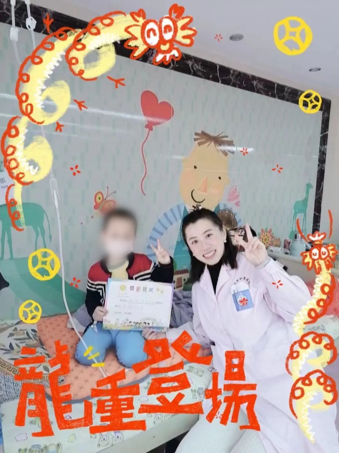 在病房里,儿童快乐亲情护理依然在延续,护士不仅为患儿提供专业的护理技术操作,同时还注重心理护理,陪伴住院的小患者,赏花灯、读绘本,画祥龙,携手赴新春,守护儿童的希望和活力。