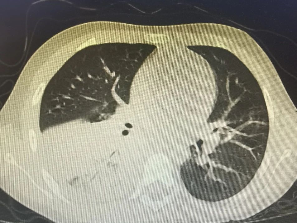 节假日期间,七七出现了间歇性胸痛,疼出了眼泪,又出现了一次低热,家属的心再一次提到了嗓子眼儿。刘铁英主任连忙赶到医院看望他,担心重症肺炎可能出现恢复期的肺栓塞,又紧急联系放射线,放射线曹主任马上安排会诊给他急查了肺增强CT。结果出来后没有发生栓塞,医护人员和家属都松了一口气,考虑跟胸水吸收后引起的胸膜牵扯痛有关系,对症处置后2-3天胸痛消失,发热也很快消失。