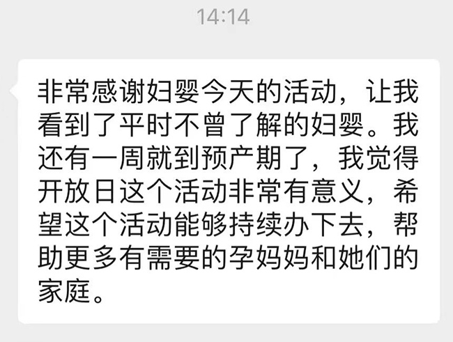 体验结束后,孕妈妈们打消了顾虑,消除了对分娩的恐惧,坚定了自然分娩的信心,纷纷表示让自己的亲人、朋友也来产房进行体验,真的受益匪浅。