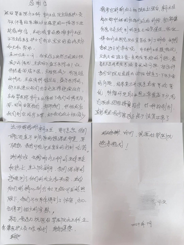 2024年7月9日上午,在锦州市妇婴医院(妇幼保健院)内三科不时传来一阵阵喜悦的谈笑声,原来是我们的“老”患者欢欢的父母为李丹主任和科室全体医护人员送来了锦旗和感谢信。回想欢欢的病情,那真是惊心动魄历历在目。