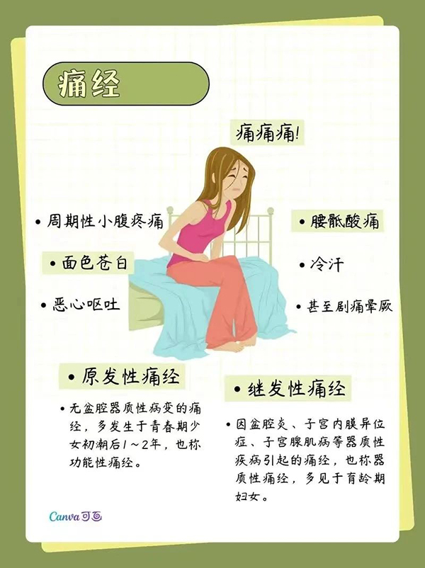 痛经是指月经前后或月经期出现下腹部疼痛、坠胀,伴有腰酸或其他不适。痛经分为原发性和继发性两类。今天一起聊聊较常见的原发性痛经。