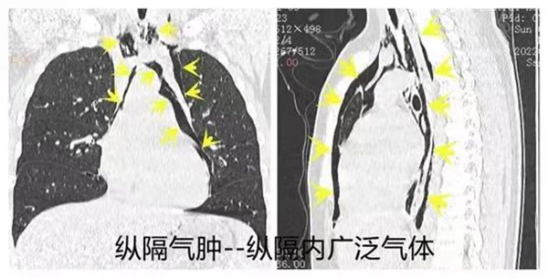 医源性因素 :胸部手术或其他侵入性操作不当,也可能导致气体进入纵隔。