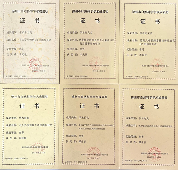 科室多人次被评为锦州市市级后备学术及技术带头人、锦州市基础学术及技术带头人。