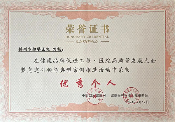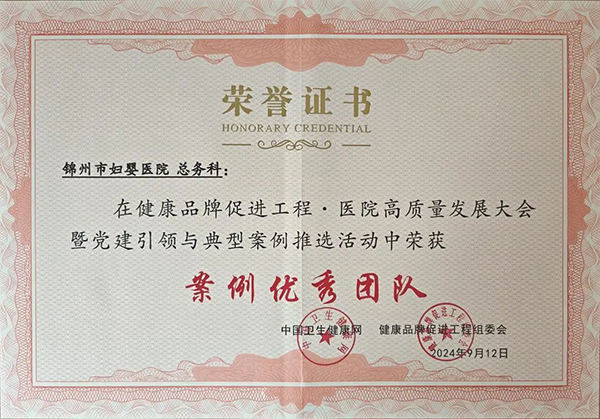锦州市妇婴医院党委申报的《党建引领医院高质量发展》案例荣获健康品牌促进工程·高质量发展案例典型单位殊荣
