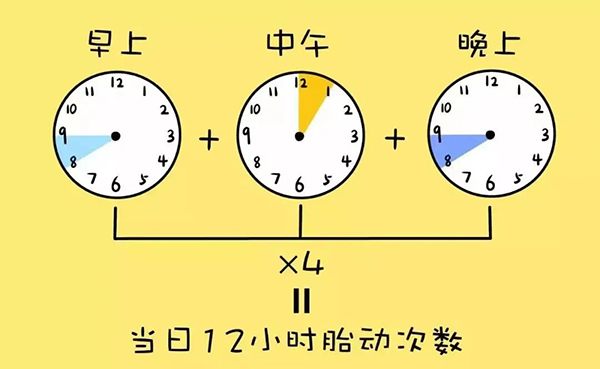 最后教大家几种计数胎动的方法:方法一:在同一时间计数胎动,每次计数10次胎动并记录所用时间,若用时超过2小时,需及时就医,方法二:同一时间记录2小时的胎动数,若计数2小时胎动不足10次,可变化体位,改左侧卧位,再做2小时计数,若仍少于10次或减少50%可能提示宫内缺氧,需及时就医。方法三:在每日早、中、晚固定时间,最好是餐后1小时左右各测胎动1小时(胎儿在5分钟之内连续动算一次),将胎动数相加乘以4即得12小时的胎动数,12小时大于30次为正常,12小时小于20次为异常,后一天与前一天同一时间相比,胎动次数减少或增加50%以上为异常,应及时就医检查。以上已经教会大家几种在家监测胎动的方法,当然在专业妇幼保健机构里,也可以应用无应激实验和宫缩应激试验进行计数胎动,以上两种监测方法必须在专业的医生监护下进行。现在就来尝试一下计数胎动感受生命的律动和交流的美妙吧。