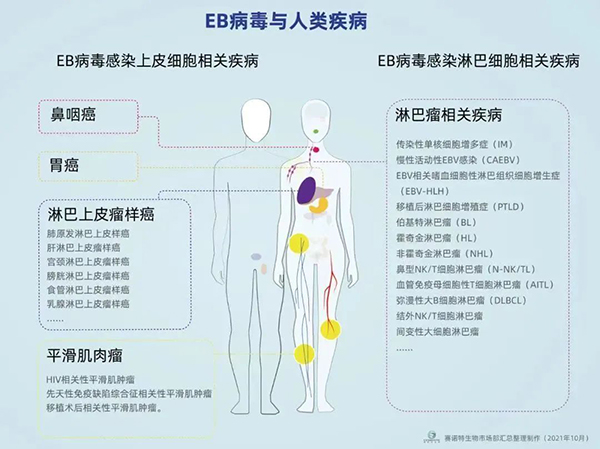 原发感染主要发生在幼儿,但感染症状不明显,有的甚至仅表现为上感的症状,且6岁以下感染者多为隐性感染,因此未引起重视。通常全年都会发生,主要发生在深秋和初春。感染后大多数患者可以获得更持久的免疫力,但少数患者可引起与之相关的疾病,主要包括传染性单核细胞增多症、病毒性肺炎、病毒性心肌炎,甚至发生淋巴瘤、鼻咽癌、慢性活动性EB病毒感染、嗜血细胞综合征等恶性疾病。EB病毒感染的并发症比较少见,可以表现为脑膜脑炎、自身免疫性溶血性贫血、全血细胞减少、咽喉部溶血性链球菌感染、肝炎、急性肾炎、脾破裂等,严重者可危及生命。