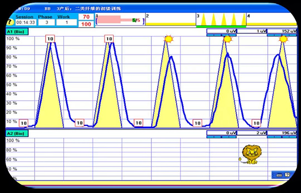 关于疗程,我们推荐首次治疗10-15次。如果肌力还可以,基础的电刺激两次后即可开始联合生物反馈练习,学习两个最简单的II类肌和I类肌的收缩后开始进行盆底整体训练、咳嗽反射、场景生物反馈等训练。如果肌力差、基础肌电位很低或存在盆底肌筋膜疼痛,会建议加做盆腹动力循环或盆底磁刺激,并且增加基础电刺激的次数到15次。必要时还需第二个疗程,此后还可以在站立位、行走、负重等情况下进行收缩盆底肌训练,将盆底肌收缩用于生活的多个场景下。