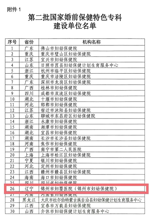 【喜报】锦州市妇婴医院(妇幼保健院)荣获国家婚前保健特色专科建设单位