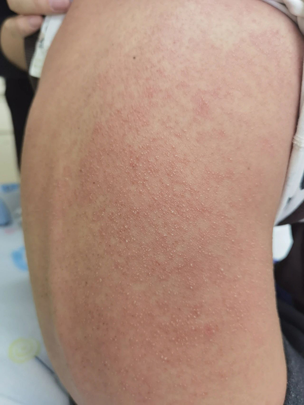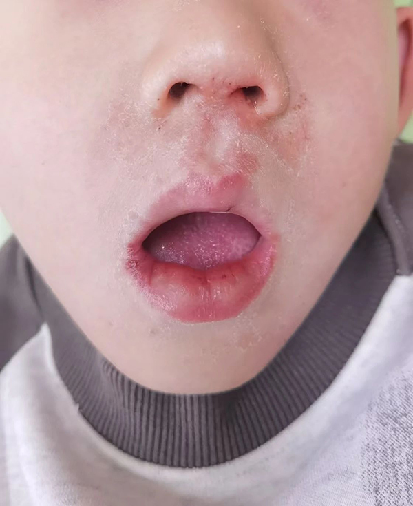 一周前,9岁的哥哥大宇莫名嗓子疼,在当地诊所输液治疗几天后症状缓解。然而,1周后大宇手脚出现脱皮,父母并未在意。5天前,4岁的弟弟小宇也开始嗓子疼,还伴有高热。父母同样带他去诊所输液,没想到小宇高热不退,输液4天后周身出现皮疹,伴有痒感。当地医生怀疑是药物过敏,于是一家人来到我院。