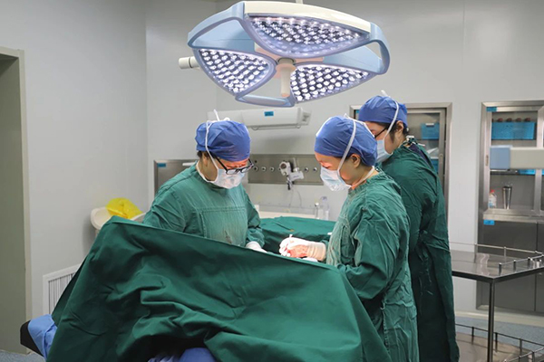 手术室里,曹艳秋主任主刀,带领安利主治医生及李奕昕医生密切配合,小心翼翼地剥离胎盘。每一刻都如履薄冰,稍有不慎,便可能引发难以挽回的严重后果。在胎盘剥离后,子宫下段胎盘附着部位突然涌出大量鲜血,术野瞬间被鲜血模糊。千钧一发之际,曹艳秋主任凭借精湛的医术迅速且精准地进行缝合,在极短的时间内成功止住了各个出血点,在场的医护人员这才如释重负地松了一口气。
