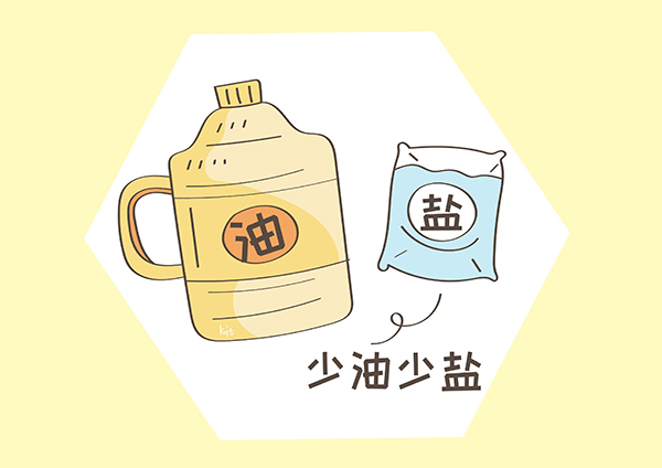 ② 清淡饮食,少油少盐。每日油的摄入量在25g以下,加碘盐的摄入量在5g以下。