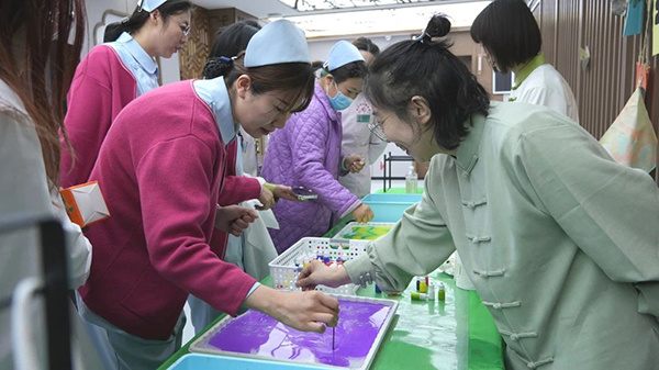 活动区秒变创意工坊,在“青囊手札”区,香附、薰衣草等药材化身为香囊精灵,女职工们亲自挑选中药材、研磨成粉、装填入香囊,制作出自己专属的香囊包。