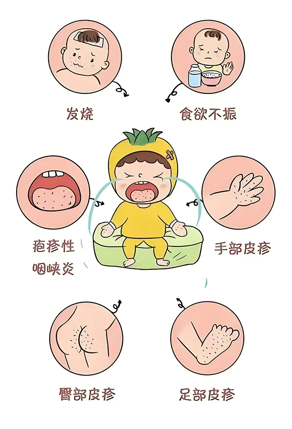 手足口病是一种常见的传染病,有20多种肠道病毒可以引起该疾病。手足口病,顾名思义就是儿童的手、足、口腔的皮肤和黏膜出现了病变,主要表现是早期发烧,后期有皮肤和黏膜的改变,包括皮肤出现红点,有的还伴有疱疹。