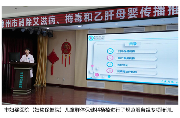 为深入推进我市消除艾滋病、梅毒和乙肝母婴传播工作,做好迎接国家评估认证准备,由锦州市卫生健康委主办、锦州市妇婴医院(妇幼保健院)承办的全市消除艾滋病、梅毒和乙肝母婴传播工作推进会暨专项培训会于4月21日顺利召开。培训会由市妇婴医院(妇幼保健院)纪委书记杨忠伟主持,市卫生健康委党组成员、副主任王颖,市妇婴医院(妇幼保健院)党委书记洪琦出席会议并讲话。市妇婴医院(妇幼保健院)院长金凤斌、妇幼健康与家庭发展科科长李瑛出席会议。