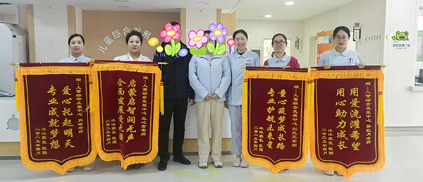 在我们康复中心,每一面锦旗背后都藏着温暖的故事。特殊教育治疗师治疗室张文潇收到的“品德高尚 教学有方 育人不倦 桃李天下”凝聚着孤独症儿童浩浩(化名)从抗拒治疗到主动参与集体活动的转变;悬吊训练室杨莹老师收到的“医德高尚口碑好 医术高明见奇效”锦旗,见证了发育迟缓的轩轩(化名)第一次独立完成跳跃动作的喜悦;还有语言治疗师王心俞、刘元元、作业治疗师孙红月、悬吊治疗师肖琼等收到的锦旗和感谢信,字里行间都承载着家属的感激之情,这些年家长对我们工作的肯定已经不计其数,这些荣誉不属于某一个人,而是整个团队协作的勋章——语言治疗师制定个性化方案,运动治疗师调整肢体协调性,感统训练师优化感知觉能力,整个康复治疗团队像精密齿轮般配合,为孩子们编织康复的希望之网。
