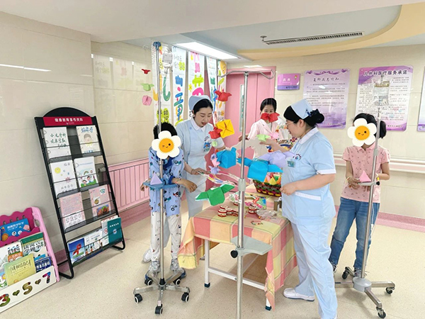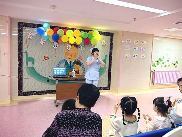 为了让孩子们在医院度过美好的节日,儿童医院举办了一系列科普互动活动。在儿科病区的护士站,医护人员通过生动有趣的图片和视频,向孩子们和家长们介绍了儿童手卫生、安全用药、促进肺功能康复呼吸操等健康知识。很多家长积极参与科普活动,医护人员耐心地为他们解答,家长们学习了很多的护理知识。