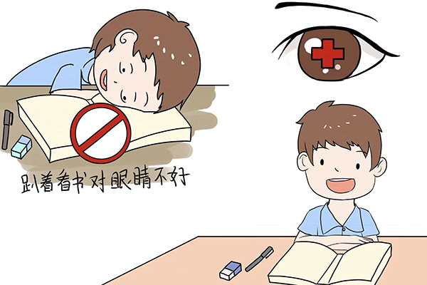 不良读写姿势 (趴着、躺着看书)。
