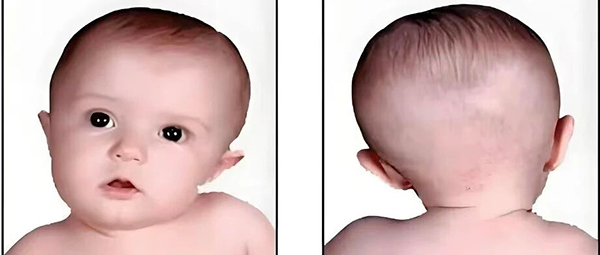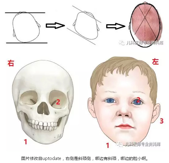 4.头面部不对称:患侧脸小且扁平,或伴见患侧眼裂小,健侧后枕部扁平。