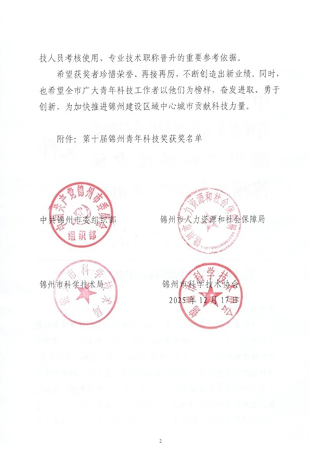 近日,在市委组织部、市人社局、市科技局、市科协联合组织开展的第十届锦州青年科技奖评选活动中,我院中心实验室王佳美同志凭借扎实的科研功底、突出的创新能力和丰硕的学术成果,成功荣获“第十届锦州青年科技奖”荣誉称号。此次评选竞争激烈,王佳美同志能够脱颖而出,不仅是其个人长期深耕科研一线、勇于攻坚克难的结果,更彰显了我院在人才培养、科研创新方面的卓越成效,进一步提升我院科研水平,推动区域医疗事业发展。