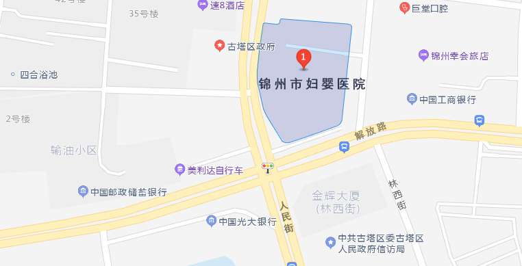 我院位于解放路与人民街的交汇处,南面金辉大厦,北对新玛特购物广场,东临锦州银行永丰支行,西临古塔区政府,地处繁华地带,地理位置优越,交通便利。
