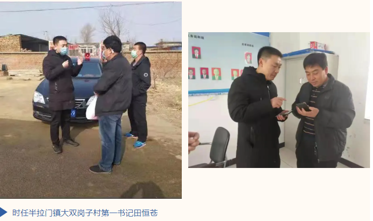 三名驻村干部积极深入调查了解村基本情况,通过实地走访、真正融入基层、与群众一起吃住,围绕群众利益无小事征求百姓意见,根据村民主要反映的民生问题实施精准帮扶。特别是2020年初新冠肺炎疫情形势严峻,针对防护物资缺口较大的情况,时任大双岗子村第一书记田恒苍与时任郝家村第一书记陈钰二人共同自费购买一次性医用口罩500个、一次性手套2000双、医用消毒酒精40瓶捐赠给半拉门镇政府。时任半拉门镇曹岗子村第一书记姜任龙向妇婴医院申请援建曹岗子村部广场两侧路灯10盏,解决了村民们因没有路灯照明带来的生活困扰。