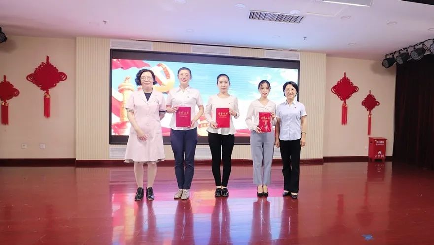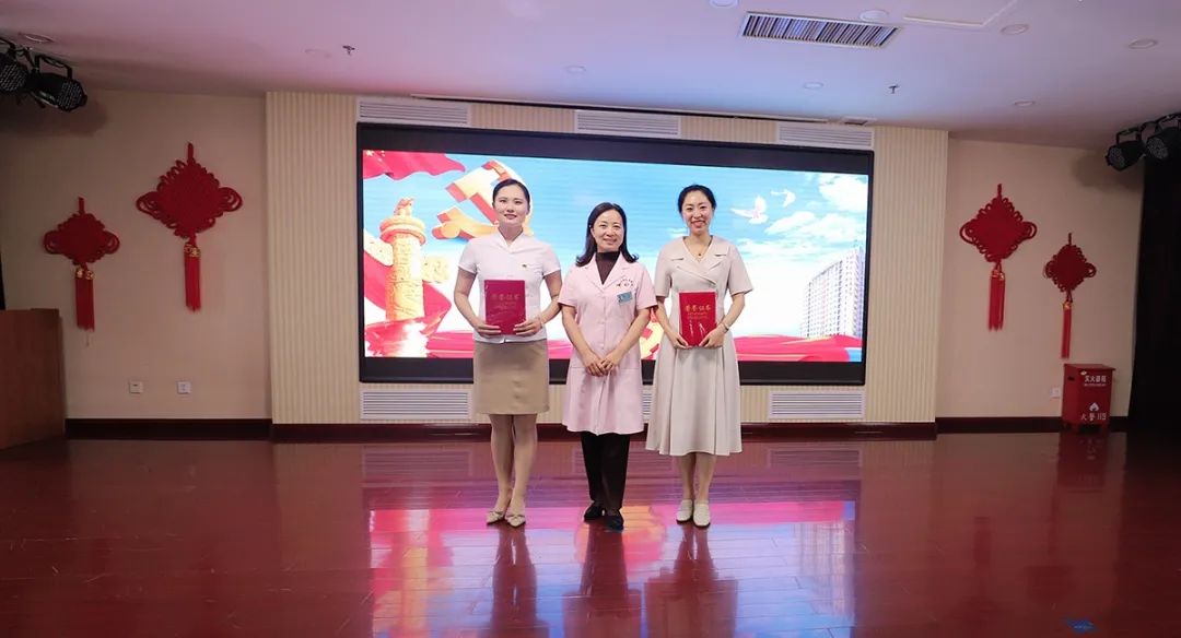 副院长张娟,纪委书记、工会主席李心页为三等奖获得者张美玲、于丹、曲晶晶颁奖