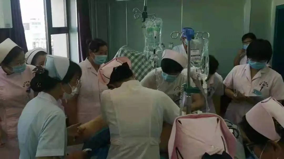 2021年9月15日7:52,产三科全体医护人员正在准备例行的交班,这时病房由外院120急诊转入一例产后出血患者,全科人员立即进入工作状态对患者进行抢救。在产三科主任王枫、副主任曹艳秋、护士长刘敏的带领下,开通绿色通道,将患者推入抢救室,开通第二路静脉通路、吸氧、保暖、心电监护、查体、问病史、给予缩宫、补液对症治疗,抽血化验、急诊备血、交待病情……大家分工明确,抢救工作紧张、有序的进行着,经过大家的努力,患者转危为安。