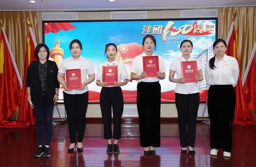 授予苑艺、何珊、苗思雨、辛欣、鲁聪5名团干部“锦州市妇婴医院优秀共青团干部”荣誉称号,由市卫健委副主任王颖、团市委副书记赵怡帆为他们颁奖。