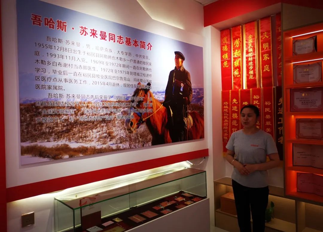 随后,他们又来到了“全国五一劳动奖章”“全国民族团结模范个人”“全国卫生系统先进工作者”获得者吾哈斯·苏来曼的事迹展览馆。通过讲解员的讲解,妇婴一行人了解到老人几十年如一日为裕民地区百姓送医送药。广袤的草原上留下过吾哈斯送医的身影;毡房里有吾哈斯抢救过的婴儿;冰天雪地中有吾哈斯出诊的串串脚印。老人的事迹感染着妇婴的医者们,他们深感和老人有很大的差距,在今后的工作中,他们会以老人为榜样,以百姓的健康为己任,践行医者的使命。