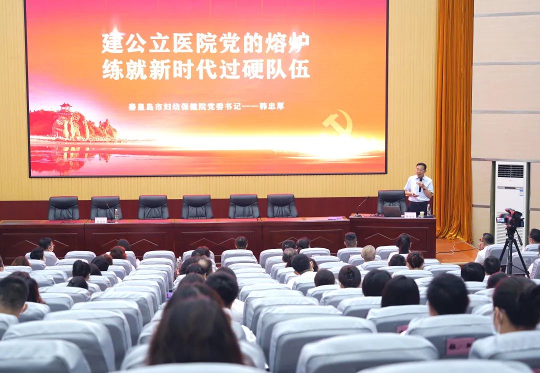 秦皇岛市妇幼保健院党委书记韩忠厚给党员干部带来了一堂精彩、生动、亮点纷呈的课程,让大家感受到了富有感染力的医院文化、充满活力与魅力的医院品牌。韩书记以《建公立医院党的熔炉 练就新时代过硬队伍》为主题,从思想熔炉建设有特色、组织熔炉建设有探索、作风熔炉建设有举措三个层面,围绕思想淬炼、干部考核、人才培养、医院管理、支部建设、工作作风等方面分享了实现医院高质量创新发展所取得的成功经验。他提出的“满足社会期待的程度决定医院发展的高度”、“珍惜岗位,把潜能发挥到极致;珍惜缘分,把品格发挥到极致”等理念,使党员干部开拓了视野,更新了新理念、新思路、新方法,指明了医院发展的前进方向,更加明确了如何做一名优秀的、不负时代使命的党员干部,为今后更好的开展工作提供了宝贵的经验与建议。