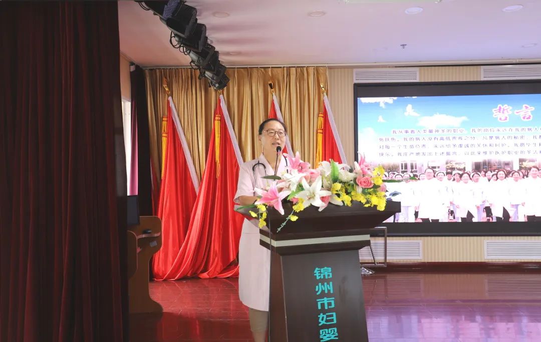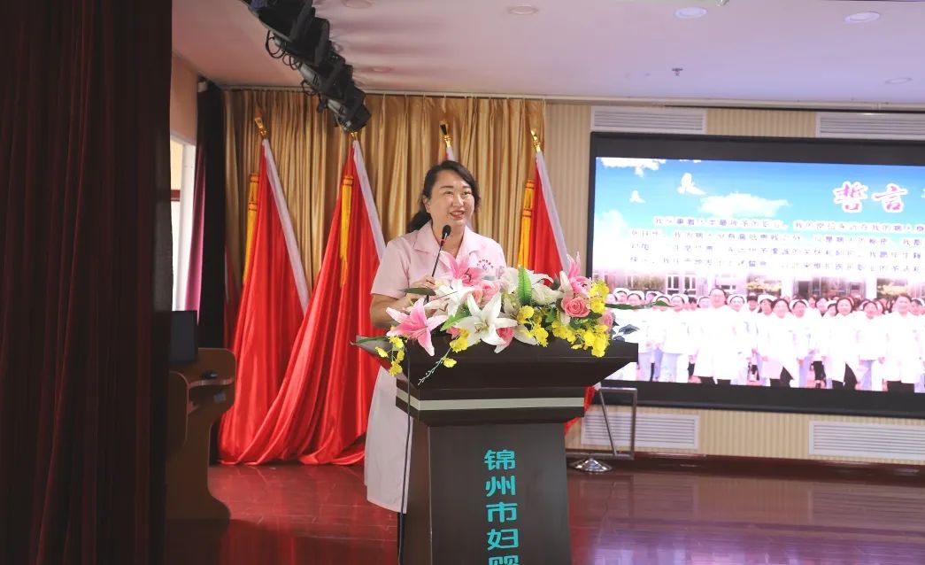 院长金凤斌带领新员工们做入职宣誓,让新员工们恪守承诺,不忘医者初心,坚定护佑妇幼健康事业发展的信仰。