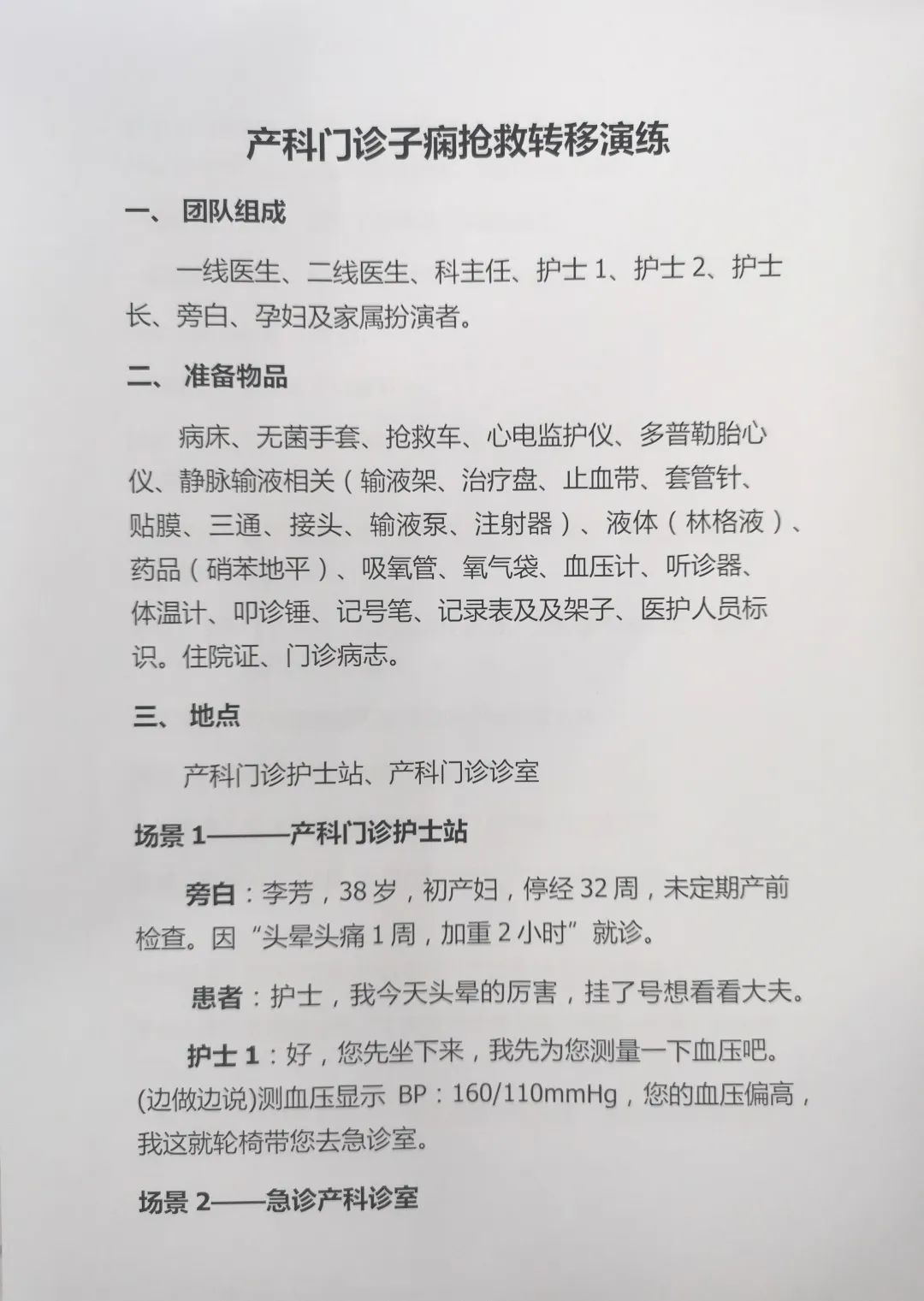 目前已进入秋季,针对东北地区妊娠高血压疾病高发的特点,为进一步提高科室医护人员对重症高血压孕产妇的应急能力和技术水平,规范急救流程,确保重症高血压孕产妇得到及时、准确、有效的救治,保障母婴健康和生命安全,产科门诊尤俊岭主任决定开展母婴保护专项行动——高危子痫患者急救演练。