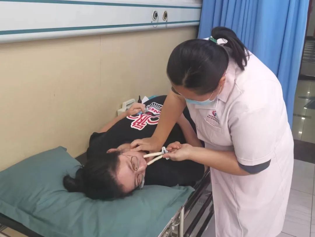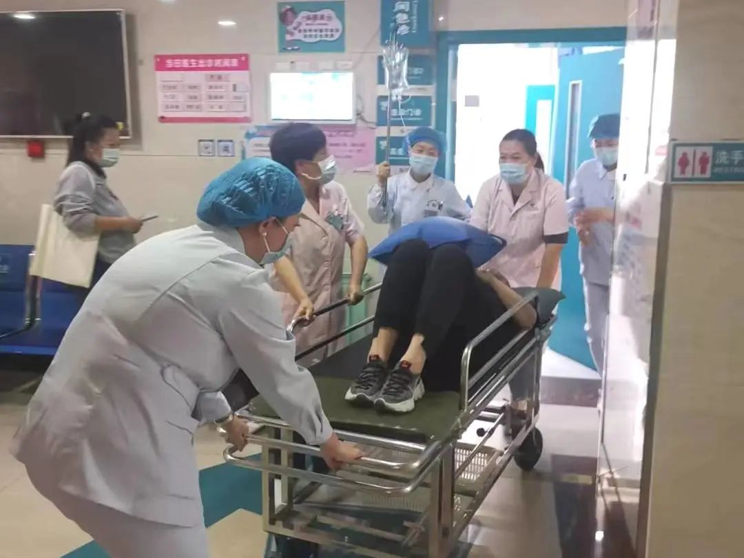 经过充分准备,9月20日下午,演练正式开始。首先,门诊护理站发现一名血压升高患者,立即开通绿色通道,将其带至急诊室。孕妇于检查过程中出现子痫抽搐,医护立即采取急救措施并发出求救信号,组织抢救团队。抢救团队紧急到达并立即参与急救,同时积极与医院各相关科室、重症病房取得联系。经急救孕妇生命体征平稳,在医护的严密看护下,紧急转运至重症病房继续接受治疗。