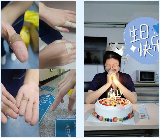 中心实验室王宏亮跟主任说明天上午先别排我上午班,带儿子去办理住院手续,没有提其他要求,下午回来又开始忙碌工作。杜如两口子一个在附属一院、一个在妇婴医院,都在检测核酸的工作中,闭环管理多日未谋面。11月7日是杜如生日,一个特别生日在核酸检测中度过,值得一生记住。佳美在长春抗疫时长期看显示器已经造成近视,这次带着眼镜继续出征,继续为锦城人民把关。
